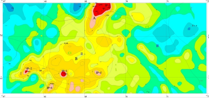 勘查区已完成 1∶2.5 万地质草测、土壤测量、磁法测量,1∶1 万地质草测、激电中梯测量,1∶5000 综合剖面测量和激电测深等工作。施工钻探2656米(6个孔)。