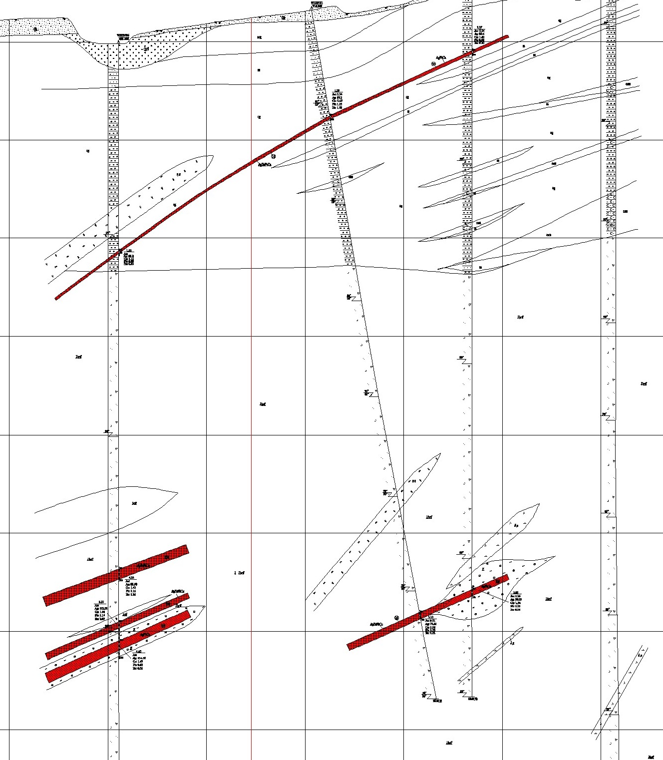 4 号(锌铅铜) | 523-668 | 162.5 | 127-267 | 2.54 | Cu0.81%、Pb0.97%、Ag58.30g/t、Zn1.03% |